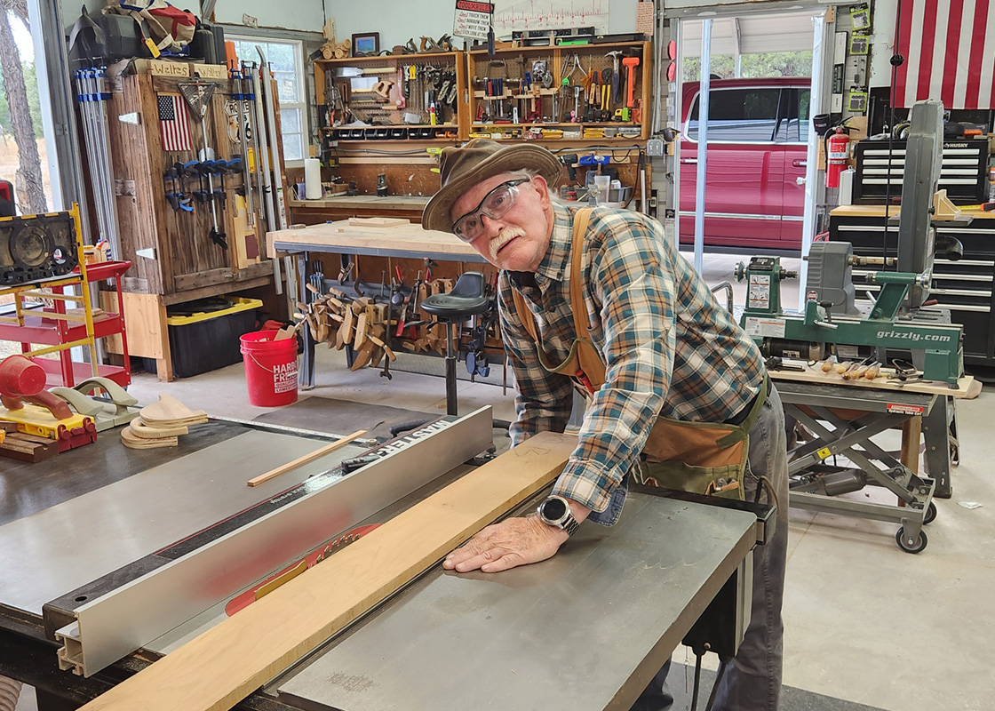 Artisan John Welles of New Mexico is a retired shop teacher, but cannot quench his passion for craftmanship, creating beautiful works with wood in his level woodshop.
